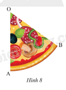 Tính diện tích của miếng bánh pizza có dạng hình quạt tròn trong Hình 8. Biết OA = 15 cm và \(\widehat {AOB} = {55^o}\).