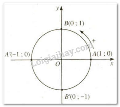 b)     Hãy nêu chiều dương, chiều âm trên đường tròn tâm O với bán kính bằng 1