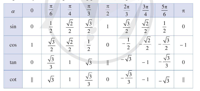 Sử dựng bảng lượng giác của các góc đặc biệt