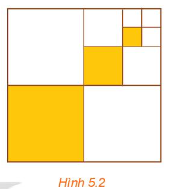 Cho hình vuông cạnh 1 (đơn vị độ dài). Chia hình vuông đó thành bốn hình vuông nhỏ bằng nhau, sau đó ô màu hình vuông nhỏ góc dưới bên trái (H.5.2). Lặp lại các thao tác này với hình vuông nhỏ góc trên bên phải. Giả sử quá trình trên tiếp diễn vô hạn lần. Gọi ({u_1},;{u_2}, ldots ,;{u_n}, ldots ) lần lượt là độ dài cạnh của các hình vuông được tô màu. a) Tính tổng ({S_n} = {u_1} + {u_2} + ldots + {u_n}) b) Tìm (S = mathop {lim}limits_{n to + infty } {S_n})