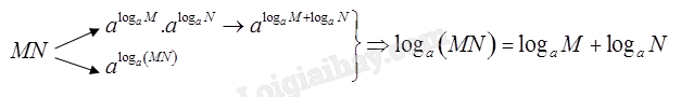 Mặt khác: \(MN = {a^{{{\log }_a}\left( {MN} \right)}}\)