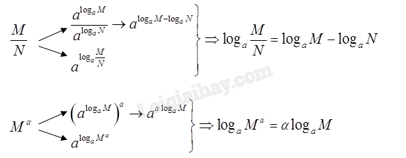 Vậy \({a^{{{\log }_a}M + {{\log }_a}N}} = {a^{{{\log }_a}\left( {MN} \right)}} \Leftrightarrow {\log _a}M + {\log _a}N = {\log _a}\left( {MN} \right)\)