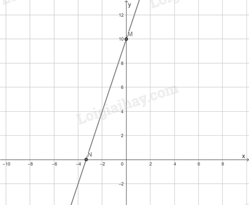 Cho \(x = 0 \Rightarrow y = 10\) ta được điểm \(M\left( {0;10} \right)\) trên trục \(Oy\).