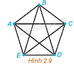 Cho đồ thị đầy đủ có 5 đỉnh như Hình 2.9. Tìm những chu trình sơ cấp xuất phát từ đỉnh A và có: độ dài 4; độ dài 5.