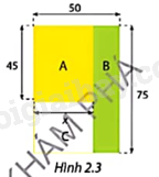 Chủ đầu tư khu chung cư Vạn Xuân muốn quy hoạch khu đất hình chữ nhật kích thước \(50m \times 75m\) giữa các tòa nhà bằng cách chia nó thành ba hình chữ nhật nhỏ A, B, C như Hình 2.3. Phần A dùng để làm sân tập luyện thể thao (có thể chơi bóng rổ, bóng chuyền), phần B dành để trồng cây xanh và phần C là nơi đặt cầu trượt, bập bênh cho trẻ em. Chủ đầu tư muốn chia khu đất sao cho diện tích hình A không nhỏ hơn diện tích hình B.