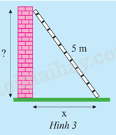 Một chiếc thang dài 5m tựa vào bức tường như Hình 3. a) Nếu chân thang cách chân tường x (m) thì đỉnh thang ở độ cao bao nhiêu so với chân tường? b) Tính độ cao trên khi x nhận giá trị lần lượt là 1;2;3;4.