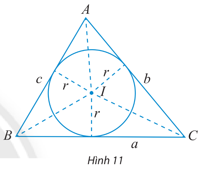Cho tam giác ABC có BC = a, AC = b, AB = c và (I;r) là đường tròn nội tiếp tam giác (Hình 11).