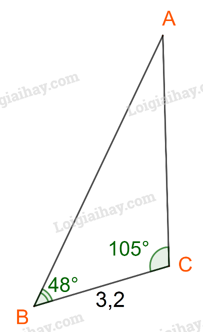Ta có: \(BC = 3,2;\widehat A = {180^o} – ({48^o} + {105^o}) = {27^o}\)