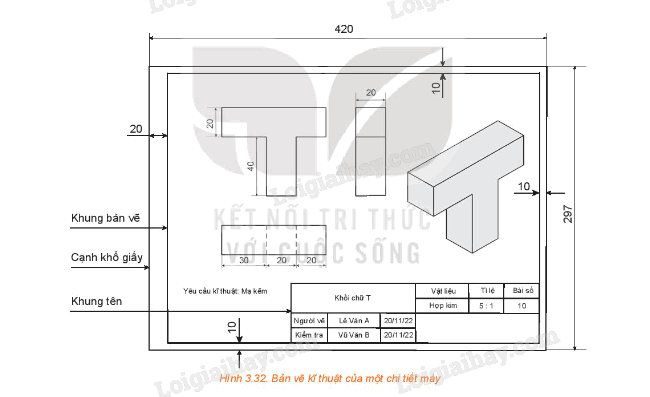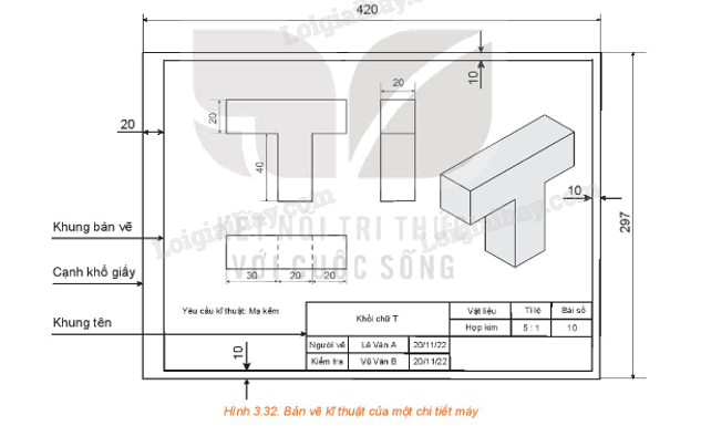 – Khung tên: xác định tên gọi của vật thể, vật liệu sử dụng để chế tạo vật thể, tỉ lệ bản vẽ.