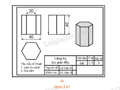 Đọc bản vẽ kĩ thuật trong Hình 3.41b.