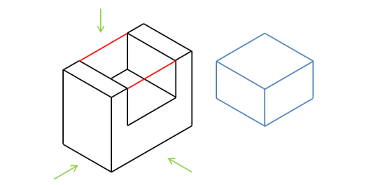 Bước 1: Nhận thấy rằng vật thể có dạng khối chữ U được bao bởi một hình hộp chữ nhật, phần rãnh cũng là hình hộp chữ nhật.