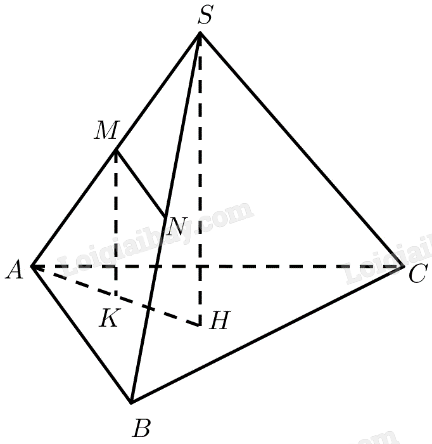 \( \Rightarrow K \in AH,MK \bot \left( {ABC} \right) \Rightarrow d\left( {M,\left( {ABC} \right)} \right) = MK\)