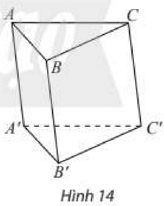 Cho khối lăng trụ tam giác \(ABC.A’B’C’\) (Hình 14). Tìm cách chia khối lăng trụ thành ba khối chóp có cùng chiều cao và diện tích đáy.
