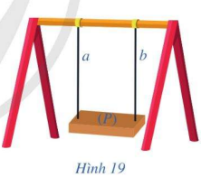 Trong Hình 19, hai thanh sắt và bản phẳng để ngồi gợi nên hình ảnh hai đường thẳng a, b và mặt phẳng (P).
