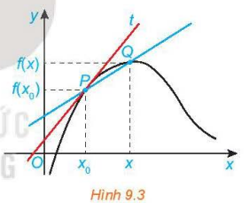 a) Đường thẳng đi qua hai điểm P, Q được gọi là một là một cát tuyến của đồ thị (C) (H.9.3). Tìm hệ số góc kPQ của cát tuyến PQ.
