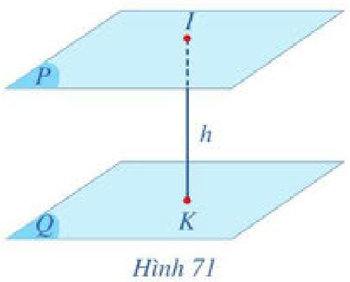 b) Cho hai mặt phẳng \(\left( P \right)\) và \(\left( Q \right)\) song song với nhau. Xét điểm \(I\) tuỳ ý trong mặt phẳng \(\left( P \right)\), lấy \(K\) là hình chiếu của \(I\) trên \(\left( Q \right)\) (Hình 71). Khoảng cách \(IK\) từ điểm \(I\) đến mặt phẳng \(\left( Q \right)\) có phụ thuộc vào vị trí của điểm \(I\) trong mặt phẳng \(\left( P \right)\) hay không? Vì sao?