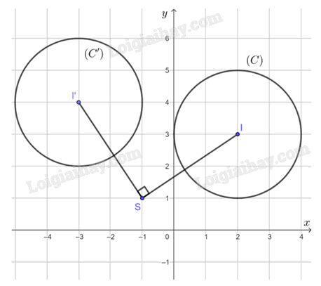Vậy ảnh đường tròn (C) qua phép quay tâm S(– 1; 1) với góc quay φ = 90° là đường tròn (C’) có tâm I'(– 3; 4), bán kính R’ = 2.