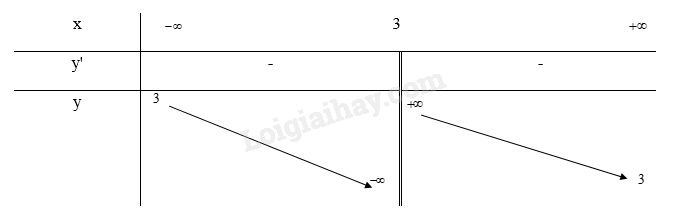 Tập xác định: \(D = \mathbb{R}\backslash \{ 3\} \)
