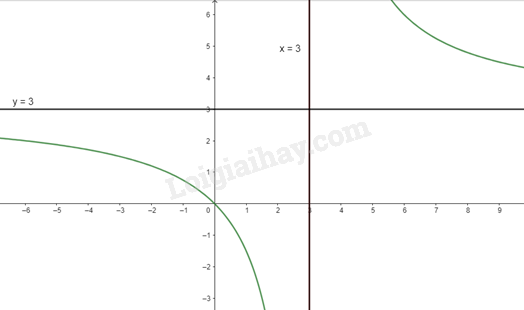 \(\mathop {\lim }\limits_{x \to {3^ + }} y = \mathop {\lim }\limits_{x \to {3^ + }} \frac{{3x}}{{x – 3}} =  + \infty ;\mathop {\lim }\limits_{x \to {3^ – }} y = \mathop {\lim }\limits_{x \to {3^ – }} \frac{{3x}}{{x – 3}} =  – \infty \) nên x = 3 là tiệm cận đứng của đồ thị hàm số