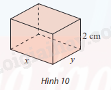 Người ta muốn chế tạo một chiếc hộp hình hộp chữ nhật có thể tích 500\(c{m^3}\) với yêu cầu dùng ít vật liệu nhất. Chiều cao hộp phải là 2 cm, các kích thước khác là x, y với x > 0 và y > 0.