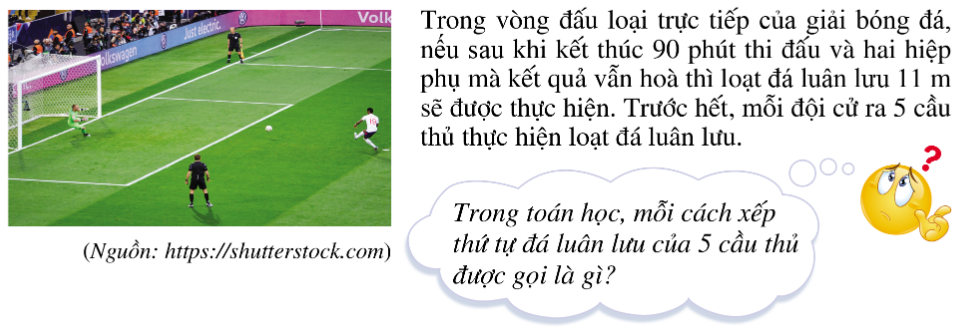 Trong toán học, mỗi cách xếp thứ tự đá luân lưu của 5 cầu thủ được gọi là hoán vị.