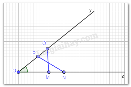 Chứng minh tam giác OMQ bằng tam giác OPN. Hai tam giác bằng nhau thì các cặp cạnh tương ứng bằng nhau.