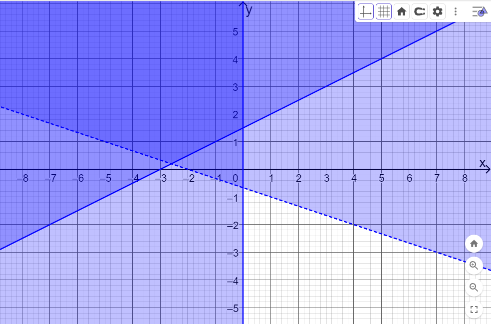 x+3y>-2; \(x \le 0\)(x<=0). Khi đó màn hình sẽ hiển thị như hình dưới.
