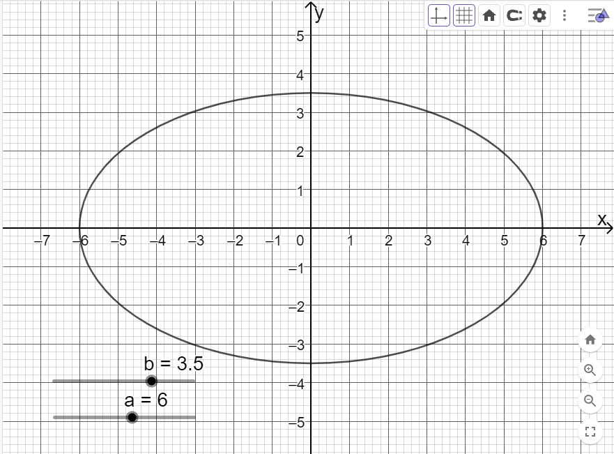 Di chuyển trên thanh trượt vào giá trị a=6, b=3,5 ta được như hình dưới