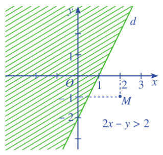 b) Thay tọa độ điểm M vào bất phương trình (3), nếu thỏa mãn thì (2;-1) là một nghiệm của bất phương trình (3)