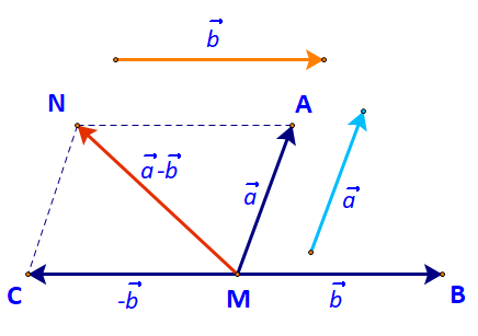 \( \Rightarrow \overrightarrow a  + ( – \overrightarrow b ) = \overrightarrow {MN} \).