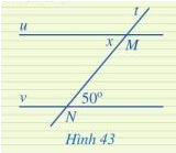 Tìm số đo x trong Hình 43, biết u // v
