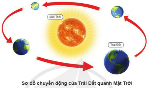 Chỉ và nói chiều chuyển động của Trái Đất quanh Mặt Trời trên sơ đồ.