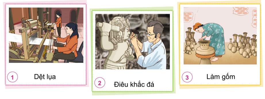 Hãy nói về những hoạt động sản xuất thủ công trong các hình dưới đây. Các hoạt động đó mang lại lợi ích gì?