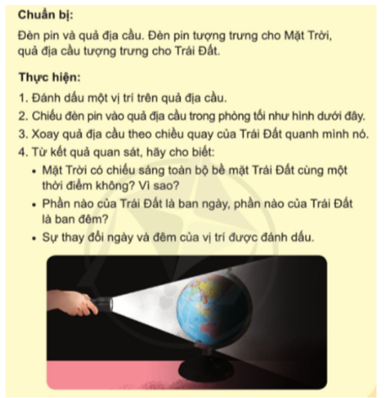 – Phần được mặt trời chiều sáng là ban ngày, phần không được chiếu sáng là ban đêm.