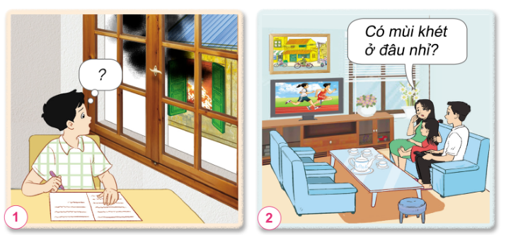 + Nếu ngửi thấy mùi khét trong nhà, em sẽ bảo bố mẹ đi kiểm tra các thiết bị điện trong gia đình xem có thiết bị nào đang rò rỉ điện hoặc có đồ đang đun trên bếp nhưng chưa tắt bếp không.