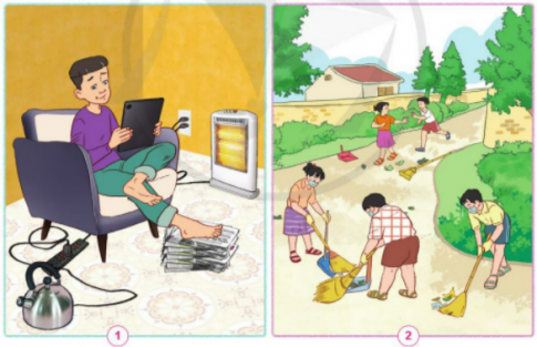 – Tình huống 2: Nếu có mặt trong hình 2, em sẽ nhắc nhở hai bạn nhỏ không đùa nghịch, vui chơi khi các bạn khác đang dọn dẹp làng xóm. Hai bạn nên bắt tay dọn dẹp với mọi người vì việc tổng vệ sinh xóm làng là công việc chung để giữ môi trường và nơi ở của mình luôn xanh sạch đẹp, các bạn khác làm mà mình không làm cho thấy mình là một người vô trách nhiệm.