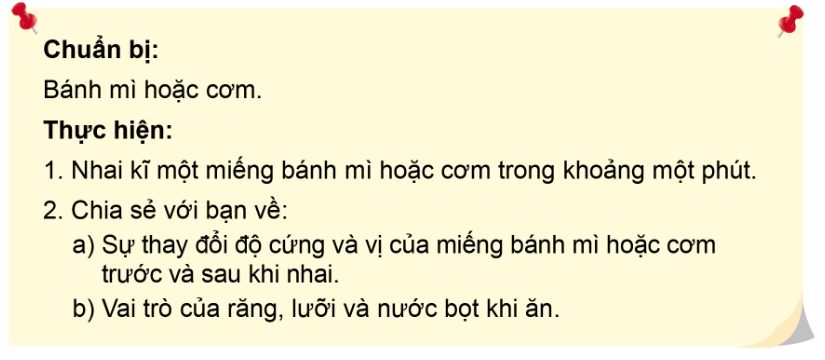 a. Sau khi nhai kĩ bánh mì và cơm có thể cảm nhận được vị ngọt.