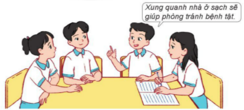 1. Nếu sống ở ngôi nhà trong hình trên, em và các thành viên trong gia đình sẽ làm gì để giữ vệ sinh xung quanh nhà ở?