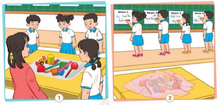 1. Những đồ vật mà em vừa quan sát: xe ô tô, khối trụ, khối cầu, bút màu, bút mực, bút chì, cục tẩy, khối hình hộp chữ nhật, khối lập phương.