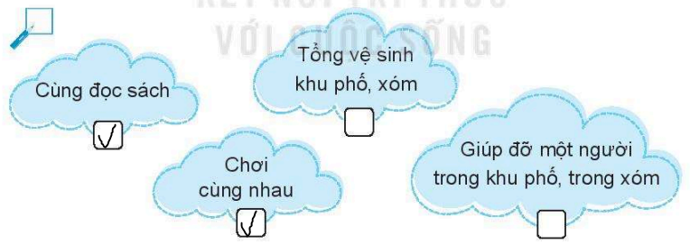 Hãy lựa chọn những việc có thể cùng làm với các bạn hàng xóm trang 47 VBT Hoạt động trải nghiệm 2 – Kết nối tri thức