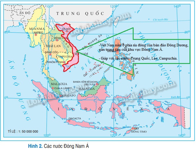 – Nước Việt Nam nằm ở phía rìa đông của bán đảo Đông Dương, gần trung tâm của khu vực Đông Nam Á.