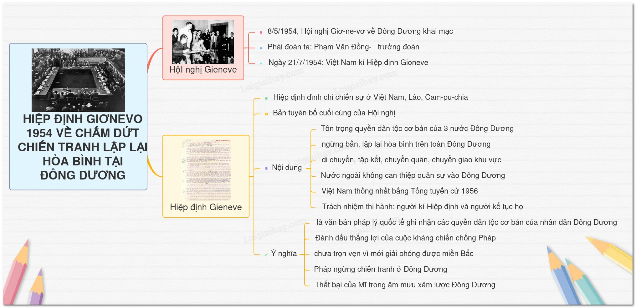Sơ đồ tư duy Hiệp định Giơnevơ năm 1954 về chấm dứt chiến tranh, lập lại hòa bình ở Đông Dương