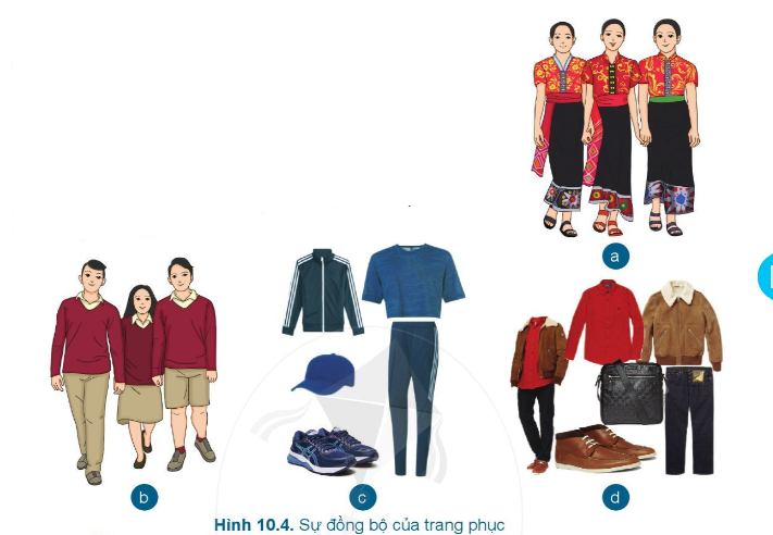 Quan sát hình 10.4 và nhận xét sự đồng bộ của trang phục.