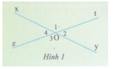 Hai thanh trường côn ở hình bên cho ta hình ảnh hai đường thẳng ay và zt cắt nhau tại O (h.1). Hãy cho biết quan hệ về cạnh, quan hệ về đỉnh của góc O1 và góc O3.