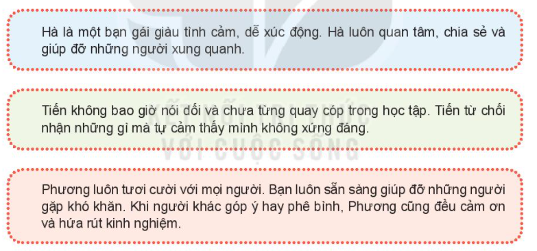 Nhận biết đức tính đặc trưng của từ bạn trong các trường hợp dưới đây. Chia sẻ cách nhận biết đức tính đặc trưng của mỗi người