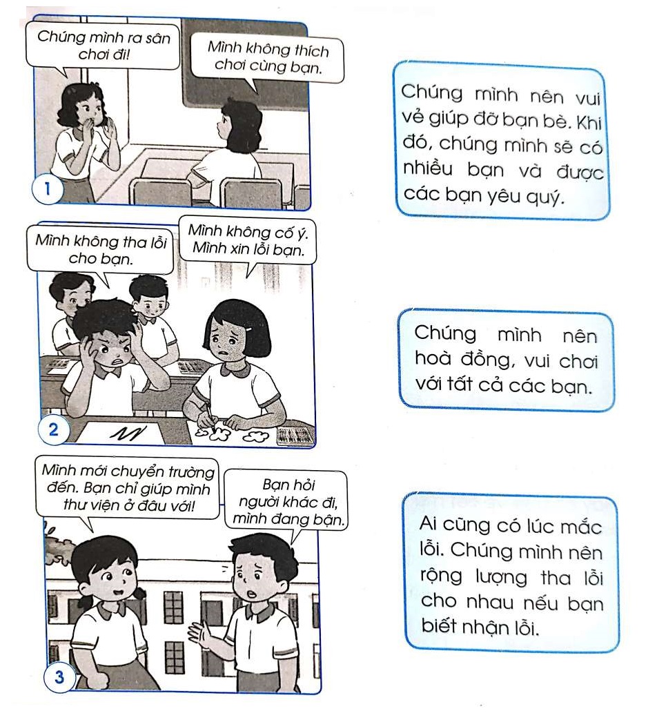 – Nếu là em, em sẽ giải quyết tình huống ấy như thế nào để thể hiện sự thân thiện, rộng lượng?