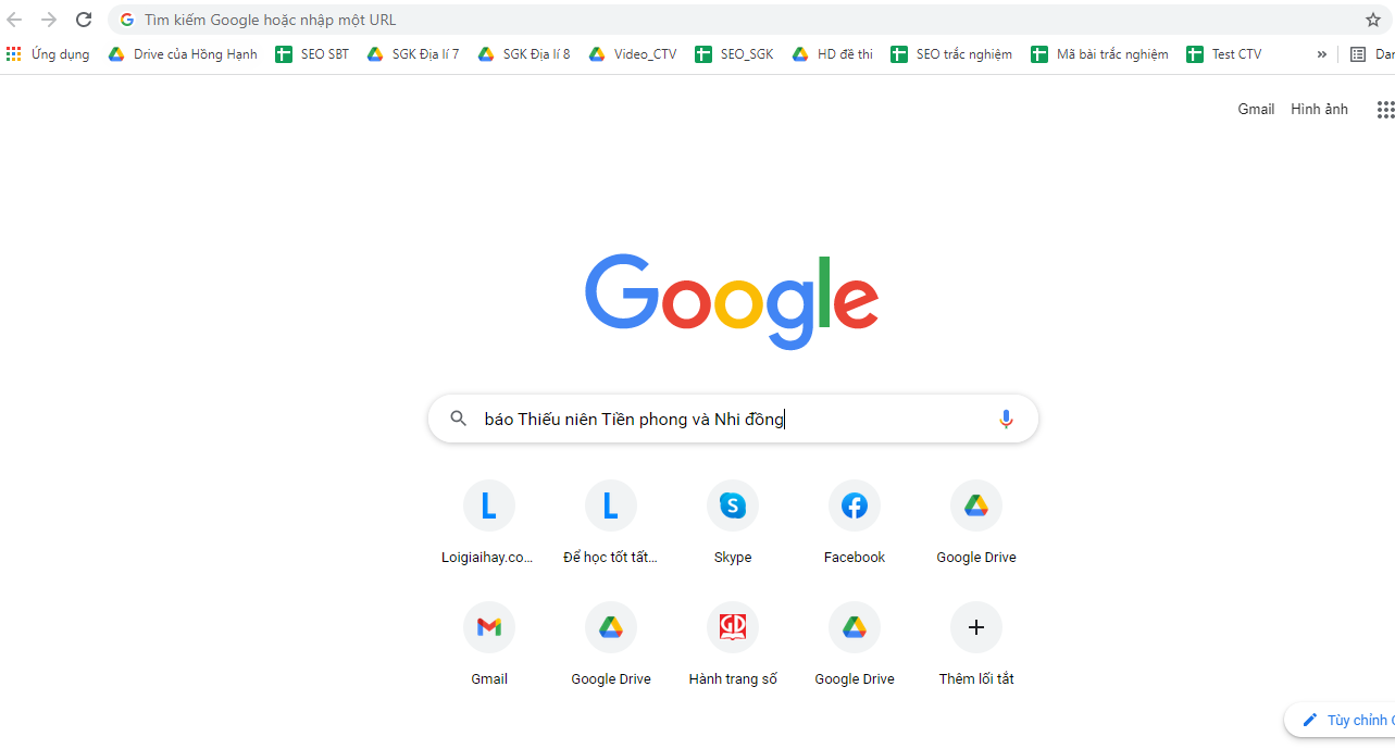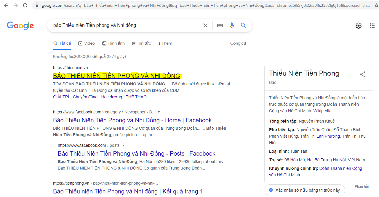 Bước 1: Điền cụm từ “báo Thiếu niên Tiền phong và Nhi đồng” tại thanh tìm kiếm của Google.