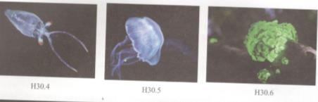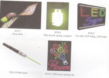 Nhiều loài sinh vật trên Trái Đất cũng có thể tự phát ra ánh sáng trắng, ánh sáng màu, như một số loài mực, sứa biển, nấm,…(hình minh họa H30.4, H30.5, H30.6).