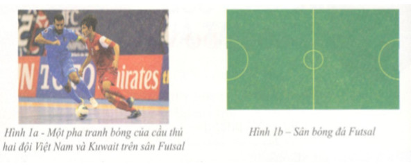 Giải bài tập Hình 1a là một pha tranh bóng của cầu thủ hai đội Việt Nam và Kuwait trên sân Futsal.