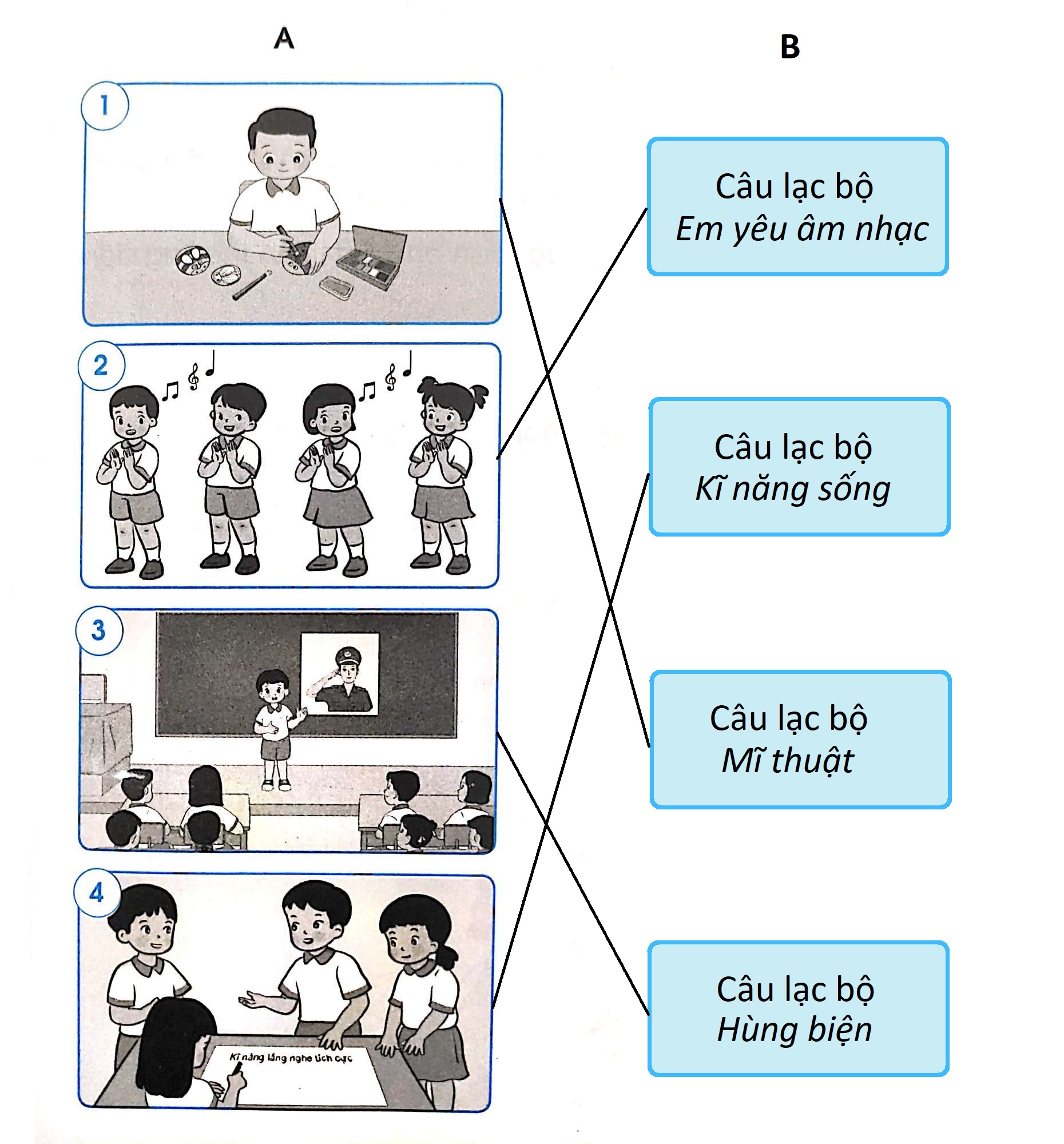 Nối các hình ảnh ở cột A với tên các câu lạc bộ phù hợp ở cột B.